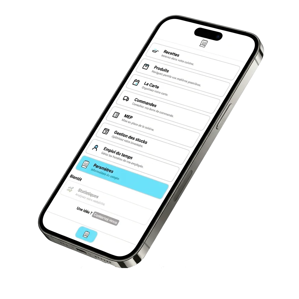 ChefMate est un logiciel de gestion de cuisine professionnelle conçu pour les chefs, gérants de restaurant et responsables de franchise. En connectant fiches techniques, food cost, stocks, commandes fournisseurs et conformité HACCP dans une seule application, ChefMate élimine la double saisie et automatise les tâches chronophages. Que vous gériez un restaurant indépendant, une cuisine centrale ou un réseau de franchise, la mise en place digitale, le calcul automatique du coût matière et le suivi des pertes alimentaires vous font gagner jusqu'à 3 heures par jour. Disponible sur iOS, Android et Web.
